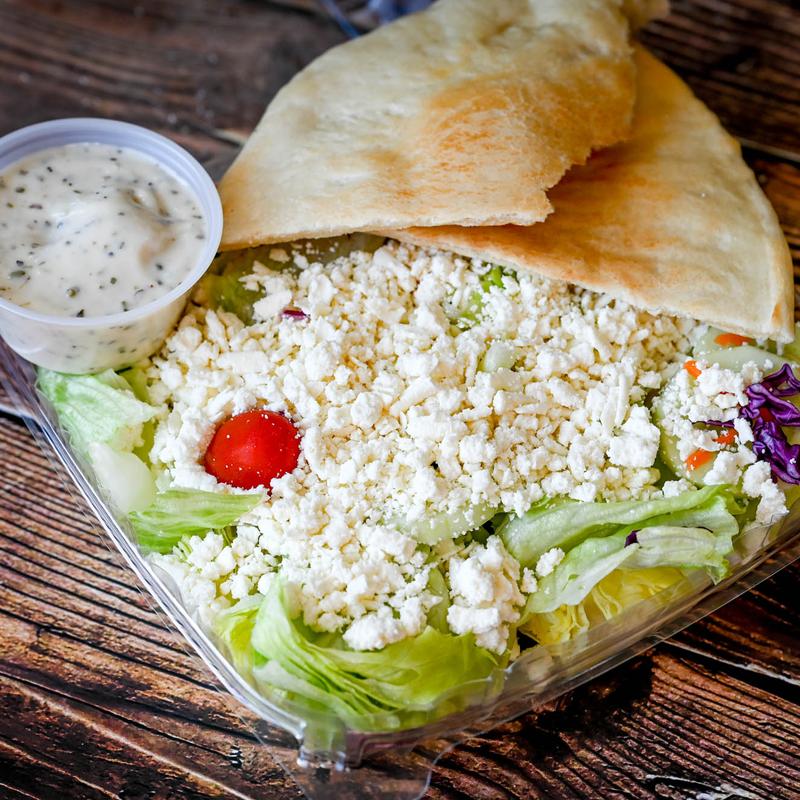 Served with fresh homemade pita bread and our signature creamy Greek house dressing. Advance notice may be required for all 1/2 and full trays.